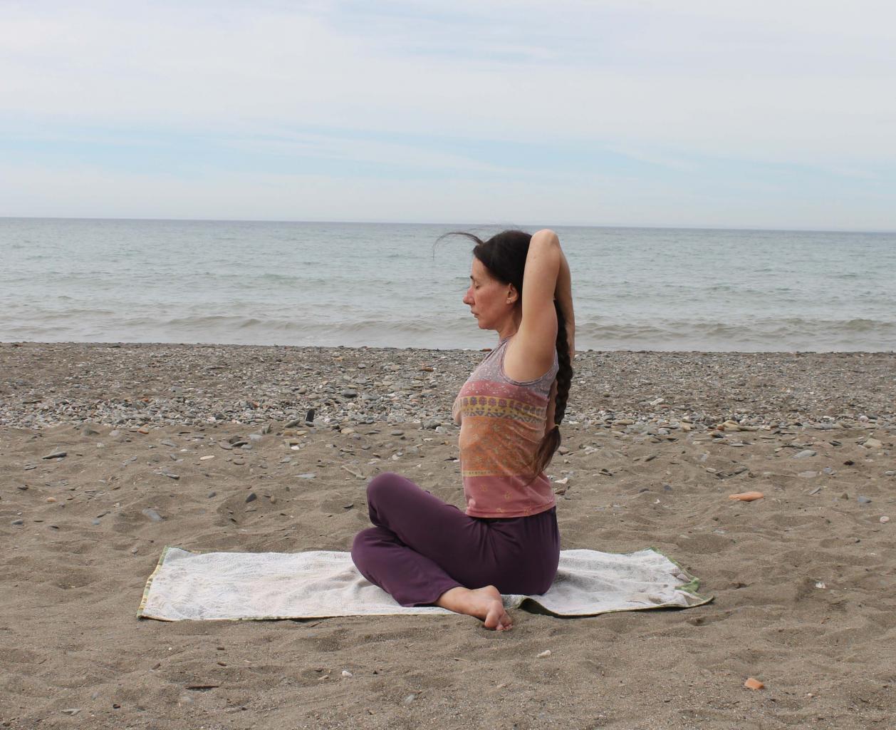 Série d'asanas prises sur la plage de la Cala del moral, en Andalousie, en mai 2013. La playa, el sol y el yoga